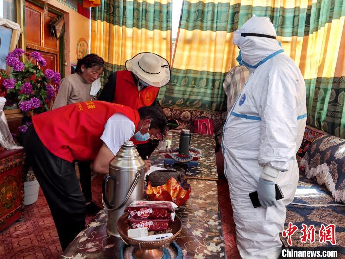 圖為黨員干部志愿者入戶排查登記。讓康村臨時黨支部供圖
