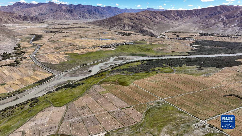 年楚河流域西藏日喀則江孜段富饒的農田(9月19日攝 無人機照片)。