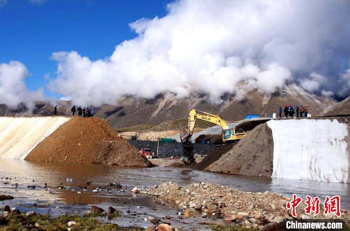 10月1日,拉薩帕古水庫實現(xiàn)導截流目標,開啟大壩填筑序幕?!「裆T? 攝