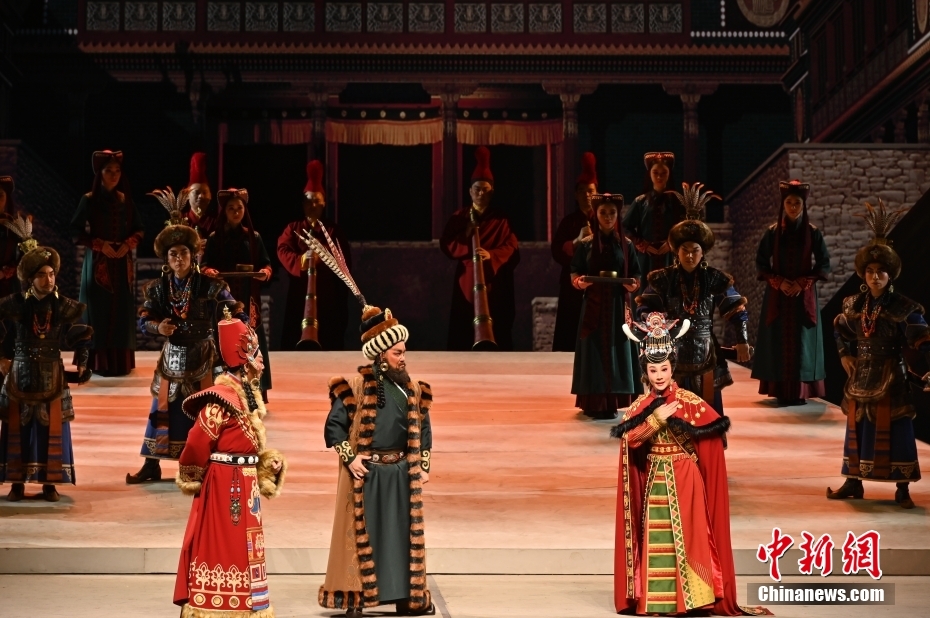 10月11日晚,大型新編歷史粵劇《文成公主》在廣東廣州大劇院首演。該劇以文成公主和親進藏的歷史事件為依據(jù)創(chuàng)作,講述了文成公主堅守吐蕃四十年,促進了吐蕃經(jīng)濟、文化的發(fā)展,加強了漢藏人民的友好關(guān)系。 中新社記者 陳楚紅 攝