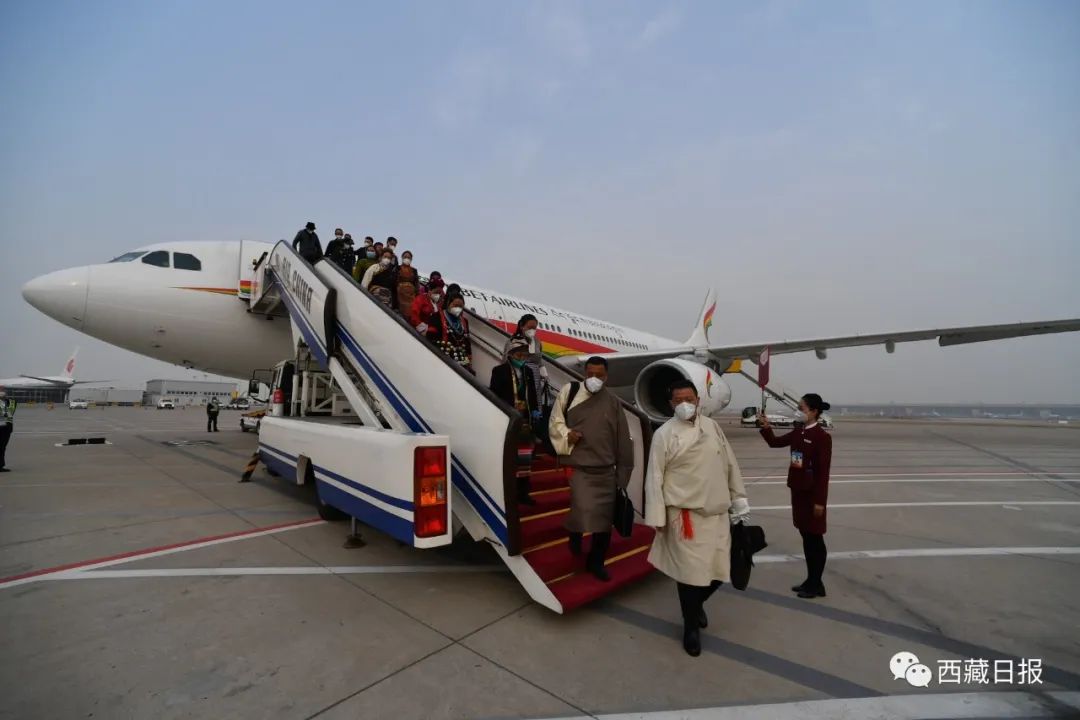今天下午,西藏自治區(qū)出席黨的二十大代表乘機抵達北京,向大會報到。