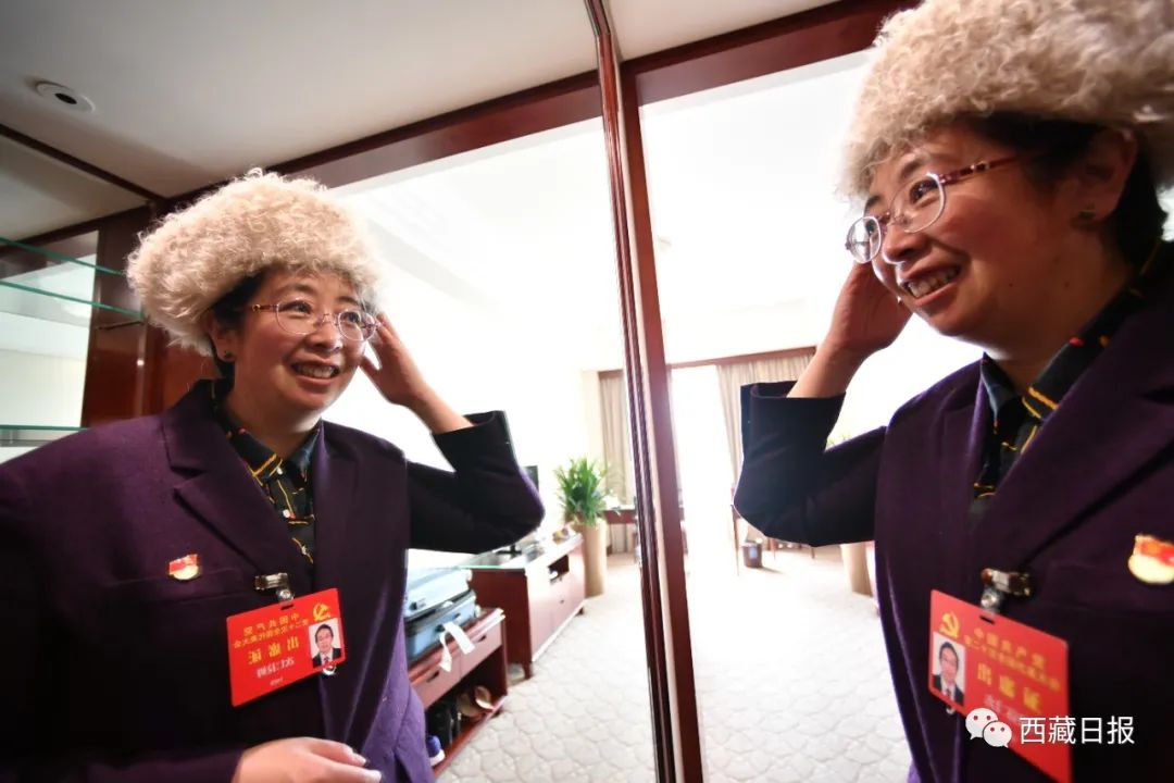 作為那曲市特殊教育學(xué)校校長,次仁拉姆代表此次赴京參會專門戴上了學(xué)生親手制作的帽子,將以飽滿的熱情開好這次大會。記者 旦增西旦 攝