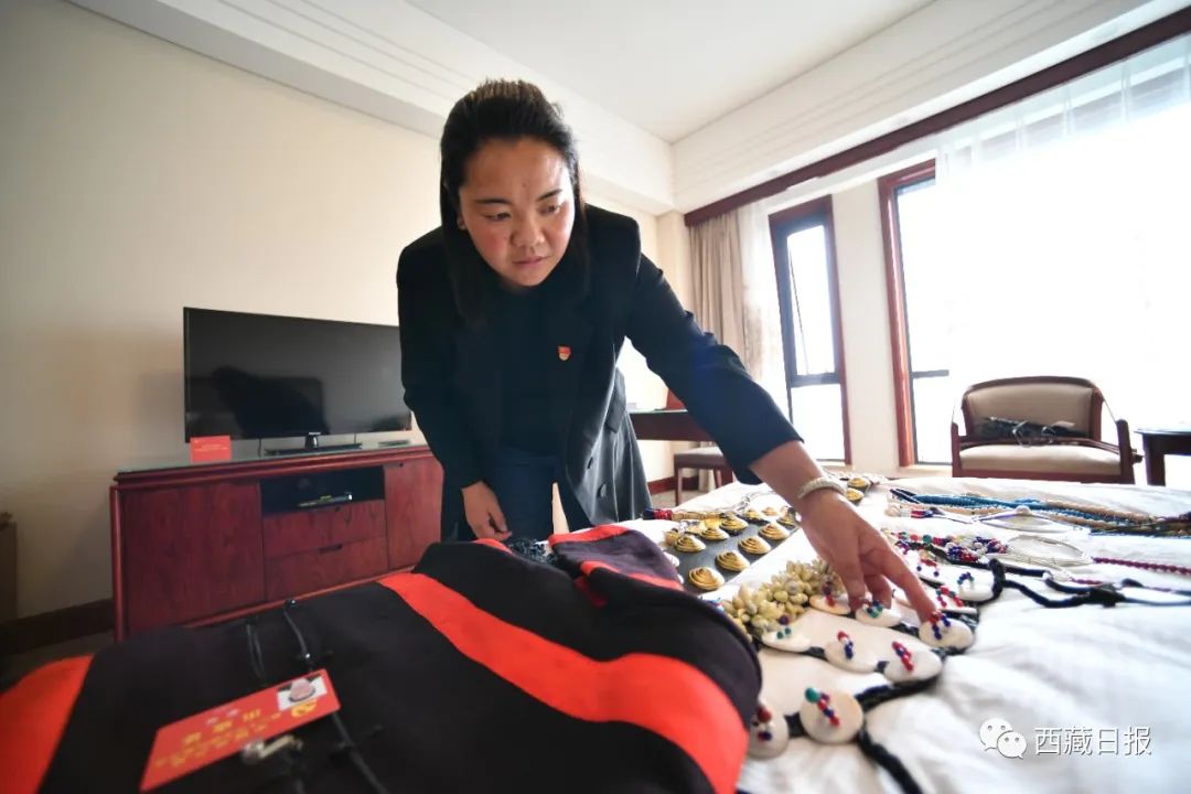 這是亞夏代表在整理出席大會穿的珞巴民族服裝。記者 旦增西旦 攝