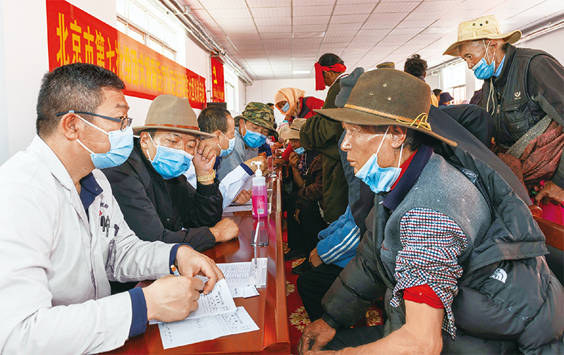 2022年6月9日,來自拉薩市人民醫(yī)院的北京市第七批“組團式”援藏醫(yī)療專家,來到當(dāng)雄縣格達鄉(xiāng)為居民義診?!⌒氯A社記者 周荻瀟/攝
