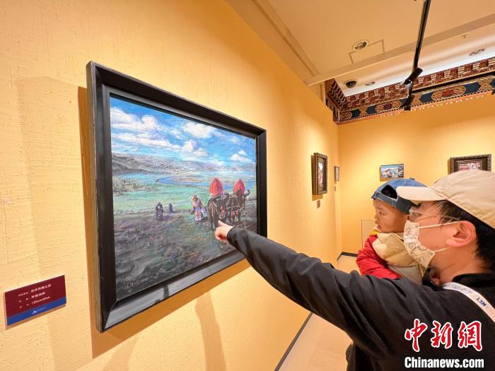 帶兒子一同前來參觀的向先生曾于2013年夏季到西藏旅游。他告訴記者,畫中的風(fēng)景、建筑和服飾非常寫實;有關(guān)冬季的畫作彌補了他未見西藏冬日美景的遺憾。