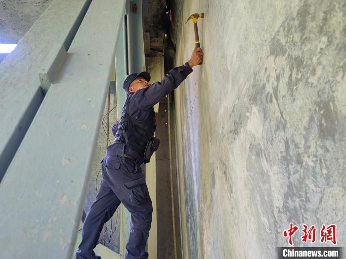 圖為墨脫邊境管理大隊(duì)民警正在檢查橋梁受損情況。 楊光飛 攝