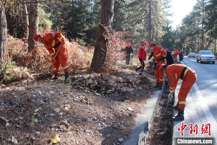 消防隊(duì)員和地方民眾一起清理林下可燃物?!⊥鯘蓷?攝