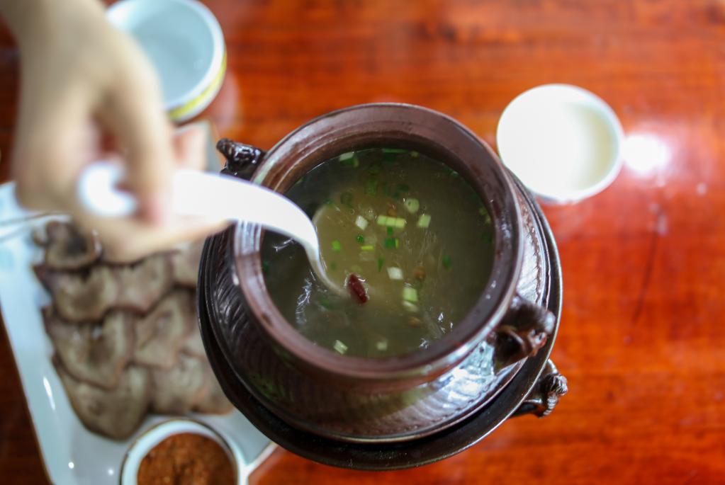 “陶器鍋里的湯不容易散味,也不容易涼?!甭迳R嫖髡f,他店里的所有陶器都是從塔巴村購買。
