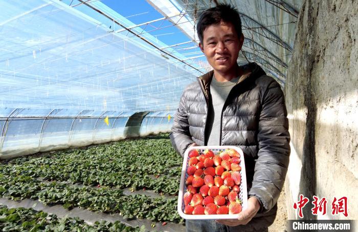 11月25日,西藏拉薩林周縣卡優(yōu)村果農(nóng)展示剛剛收獲的草莓?!±盍?攝