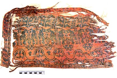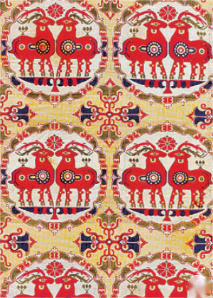青藏高原北部絲綢之路沿線出土的吐蕃時(shí)期中亞風(fēng)格的絲綢。瑞士阿拜格基金會供圖