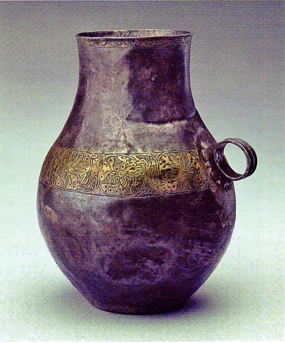 青海大通上孫家寨墓地出土的帕提亞風(fēng)格鍍金銀壺。青海省文物考古研究所供圖