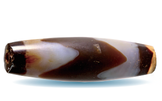 西藏阿里曲踏墓地出土的蝕花瑪瑙珠。中國社會科學(xué)院考古研究所、西藏自治區(qū)文物保護(hù)研究所供圖