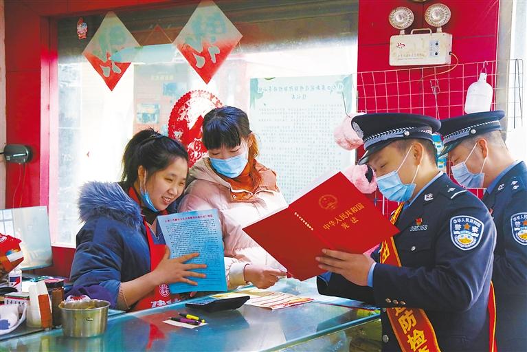圖為西藏樟木口岸聶拉木出入境邊防檢查站民警為樟木鎮(zhèn)商戶講解憲法。