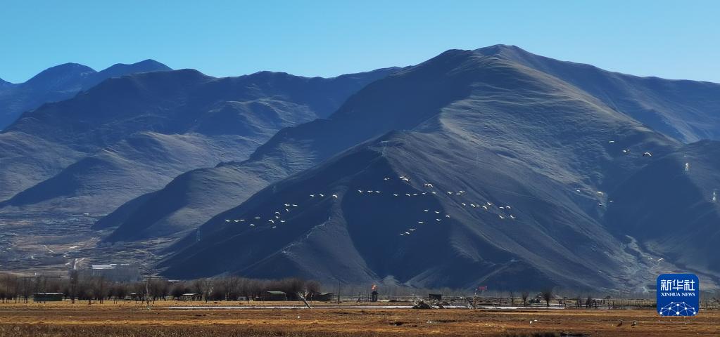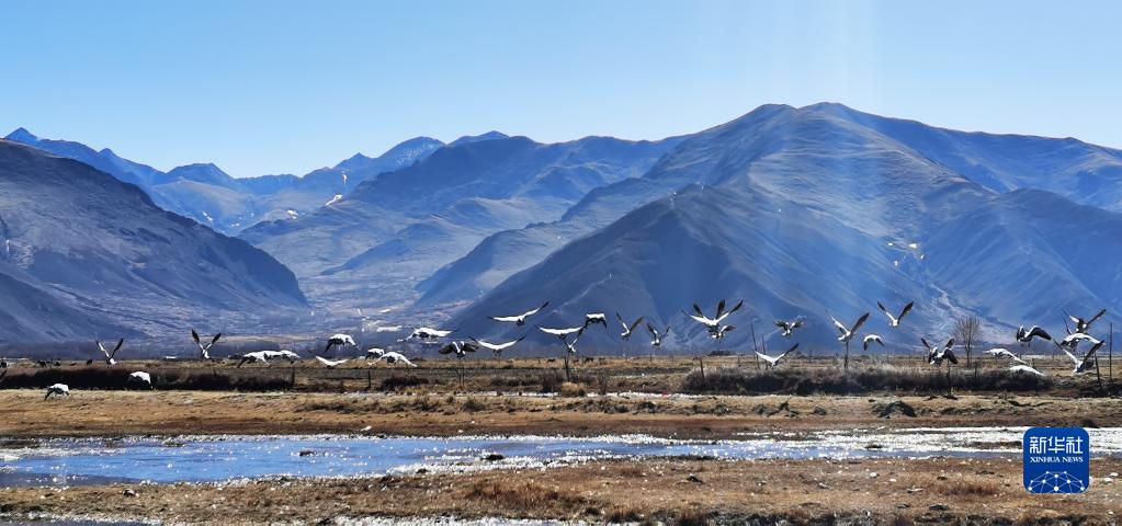 唐嘎鄉(xiāng)位于拉薩市達(dá)孜區(qū)東北部,這里每年冬季都會(huì)迎來(lái)黑頸鶴、斑頭雁、赤麻鴨等候鳥(niǎo)。這些珍稀鳥(niǎo)類時(shí)而在空中盤旋,時(shí)而棲息在水邊,營(yíng)造出一幅生機(jī)盎然的冬季畫(huà)卷。
