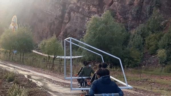 村民們騎著摩托車
