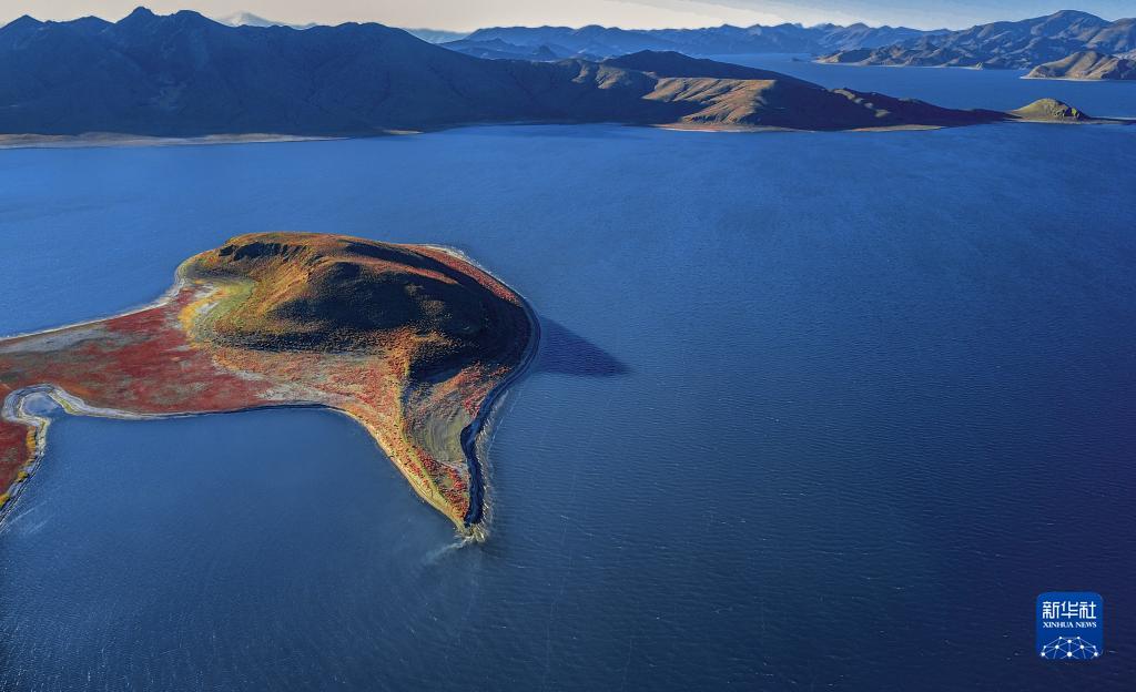 這是夕陽(yáng)下的羊卓雍錯(cuò)(12月11日攝,無(wú)人機(jī)照片)。新華社記者 姜帆 攝