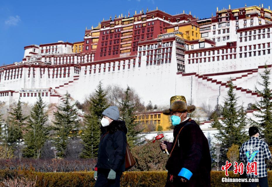1月12日,西藏拉薩,信眾圍繞布達(dá)拉宮轉(zhuǎn)經(jīng)。 李林 攝