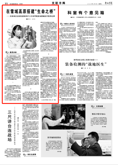 “促進優(yōu)質(zhì)醫(yī)療資源擴容和區(qū)域均衡布局,堅持預(yù)防為主,加強重大慢性病健康管理,提高基層防病治病和健康管理能力?!痹厝蝿?wù)結(jié)束回到單位后,結(jié)合學(xué)習(xí)宣傳貫徹黨的二十大精神,鄭翠霞對高原病和高原戰(zhàn)創(chuàng)傷等課題進行深入研究思考。她由衷感到,作為一名醫(yī)護工作者,要切實把學(xué)習(xí)黨的二十大精神煥發(fā)的政治熱情,轉(zhuǎn)化為干好本職工作、強化擔(dān)當作為的強大動力,以更加昂揚的精神狀態(tài)忠誠履職盡責(zé)。