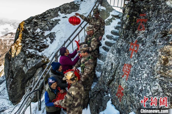 資料圖為三位藏族阿媽新年上山慰問“云中哨所”的官兵。 西藏軍區(qū)某邊防團(tuán)供圖