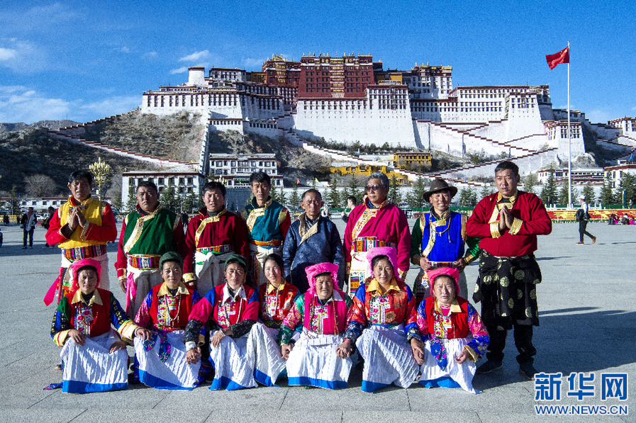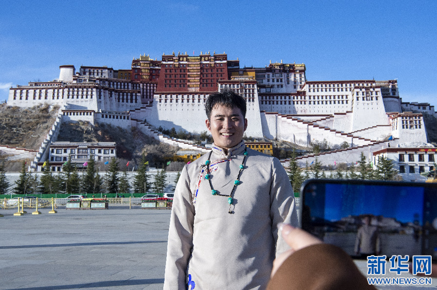 來自云南的游客在布達(dá)拉宮廣場拍照留念(1月30日攝)。新華網(wǎng) 旦增努布 攝
