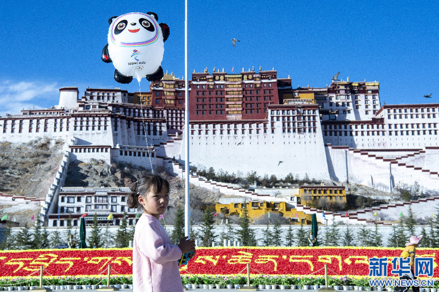 一名小女孩在布達(dá)拉宮廣場拍照留念(1月30日攝)。新華網(wǎng) 旦增努布 攝