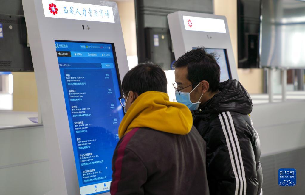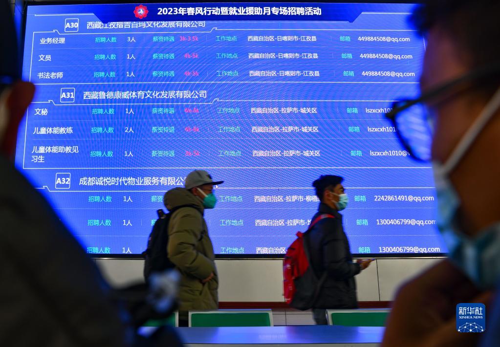 2月8日,求職者在西藏2023年“春風(fēng)行動(dòng)”暨就業(yè)援助月招聘活動(dòng)現(xiàn)場(chǎng)尋找崗位。新華社發(fā)(高嵩攝)