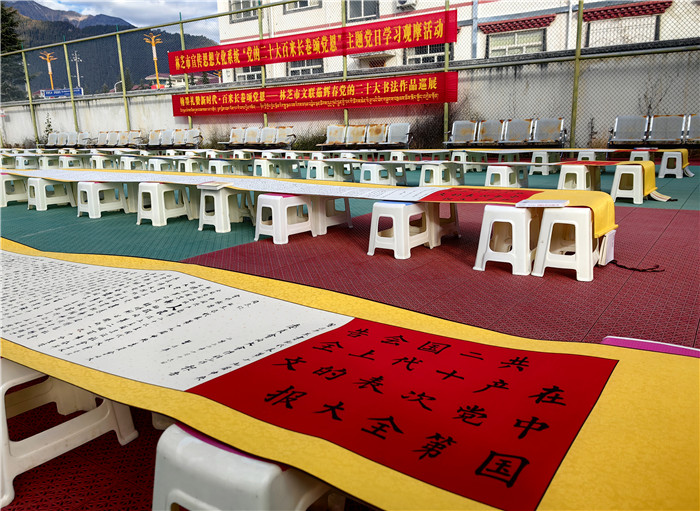 創(chuàng)新載體,全方位宣傳。林芝市統(tǒng)籌各類宣傳資源,線上線下同頻共振,全方位、多角度、寬領(lǐng)域、深層次宣傳黨的二十大精神和區(qū)黨委十屆三次全會(huì)、市委二屆三次全會(huì)精神,營造學(xué)習(xí)宣傳的濃厚氛圍。一是新聞宣傳強(qiáng)信心。林芝報(bào)、林芝廣播電視臺(tái)、西藏林芝網(wǎng)、微林芝等市屬主流媒體紛紛開設(shè)《學(xué)習(xí)貫徹黨的二十大》《新時(shí)代新征程新偉業(yè)》等多個(gè)專題專欄,持續(xù)推出學(xué)習(xí)貫徹黨的二十大精神相關(guān)報(bào)道。截至目前,共刊播《基層宣講員讓黨的二十大精神翩翩飛入百姓家》《軍民共話美好未來 繪就美麗鄉(xiāng)村新畫卷》等相關(guān)新聞2500余條。二是社會(huì)面宣傳筑同心。采取“屏、板、欄、幅”立體宣傳方式,在全市各級黨政機(jī)關(guān)和企事業(yè)單位大門LED電子顯示屏以及市、縣城區(qū)主要街道、跨街龍門、出租車頂燈、汽車站等公共場所的宣傳媒介上滾動(dòng)播放自治區(qū)統(tǒng)一印發(fā)的宣傳標(biāo)語1.2萬余條次,更新懸掛國旗3.5萬余面,制作發(fā)放宣傳海報(bào)1.5萬張、宣傳品2500余個(gè),形成抬頭可見、隨處可學(xué)的濃厚社會(huì)氛圍。察隅縣上察隅鎮(zhèn)遲巴村村“兩委”和駐村工作隊(duì)用彩色粉筆繪制黨的二十大、“新黨章”等主題黑板報(bào),用畫筆向村民傳遞黨的最新政策,深受群眾喜愛。三是網(wǎng)絡(luò)宣傳聚民心。充分發(fā)揮新媒體平臺(tái)宣傳形式豐富的特點(diǎn),持續(xù)推送重磅報(bào)道和重點(diǎn)文章,策劃打造一批融媒體產(chǎn)品,在全網(wǎng)迅速興起學(xué)習(xí)宣傳貫徹會(huì)議精神熱潮。市委網(wǎng)信辦策劃制作短視頻《學(xué)習(xí)黨的二十大精神 談心得感悟》、“林芝融媒”抖音號推出《二十大時(shí)光》微視頻,將鏡頭對準(zhǔn)二十大代表、基層黨員群眾,展現(xiàn)全市干部群眾積極向上的良好風(fēng)貌。“巴宜融媒”抖音號推出“黨的二十大精神快問快答”系列活動(dòng),線上線下聯(lián)動(dòng)學(xué)習(xí),推動(dòng)黨的二十大精神入腦入心?!安煊缛诿健倍兑籼柌邉濋_展《鄉(xiāng)村振興正當(dāng)時(shí)》黨的二十大主題抖音直播活動(dòng),通過網(wǎng)絡(luò)直觀展現(xiàn)新時(shí)代察隅新農(nóng)村、新氣象、新希望。目前已開展7場直播活動(dòng),觀看人數(shù)達(dá)10萬人次。四是文藝宣傳暖人心。充分發(fā)揮市、縣(區(qū))、村三級文藝文化團(tuán)體作用,組織開展“深入生活 扎根人民”“幸福不忘共產(chǎn)黨 陽光路上夢起航”等各類文藝文化活動(dòng),精心打造文藝精品力作,用文藝活動(dòng)、文藝作品溫暖人心。截至目前,各級文藝演出隊(duì)開展文藝匯演293場次,參與人數(shù)4.2萬余人次;創(chuàng)作推出音樂作品《沐浴幸福》、攝影作品《我和國旗》、書法美術(shù)作品《建功新時(shí)代 奮進(jìn)新征程》、文學(xué)作品《黨的光輝照萬家》等文藝作品300余個(gè)。波密縣完全小學(xué)在崗云杉林景區(qū)組織開展“學(xué)習(xí)黨的二十大,爭做好少年”采風(fēng)寫生活動(dòng),學(xué)生們以文藝創(chuàng)作的形式學(xué)習(xí)黨的二十大精神,并將學(xué)習(xí)成果轉(zhuǎn)化到作品中。市民族藝術(shù)團(tuán)以深入挖掘歷史文化、講好紅色故事為主題,籌拍了微電影《立定村屹立的紅旗》。市文聯(lián)書法美術(shù)家協(xié)會(huì)理事茹輝春同志,在黨的二十大召開后用行、楷兩種書法形式撰寫了黨的二十大報(bào)告全文書卷,書卷共有八卷,每卷長30米。市委宣傳部、市文廣局、市文聯(lián)組織市書法美術(shù)家協(xié)會(huì)開展“禮贊二十大·送福進(jìn)萬家”林芝市2023年新春書法美術(shù)家“深入生活 扎根人民”送祝福和采風(fēng)活動(dòng),共開展送春聯(lián)活動(dòng)15場次,送出對聯(lián)、福字、掛軸、繪畫等作品8950幅(對),服務(wù)群眾6700余人次。
