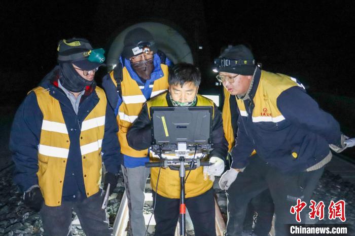圖為2月9日晚,西藏拉林鐵路設(shè)備檢查作業(yè)現(xiàn)場(chǎng)。 馬生明 攝