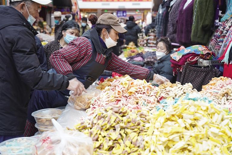 “市場現(xiàn)有1200多家商戶,經營商品有零食、蔬菜、肉類、干雜、五金、服裝等。藏歷新年臨近,每天前來置辦年貨的市民絡繹不絕,日均人流量超1萬。為保證藏歷新年期間年貨充足,市場商戶們提前籌備、積極備貨,目前,各類商品庫存充足、品種豐富,基本上能夠滿足不同消費者的需求?!睕_賽康商貿有限公司負責人尼瑪告訴記者。此外,沖賽康市場將于2月19日至27日暫停營業(yè),28日起正常營業(yè)。