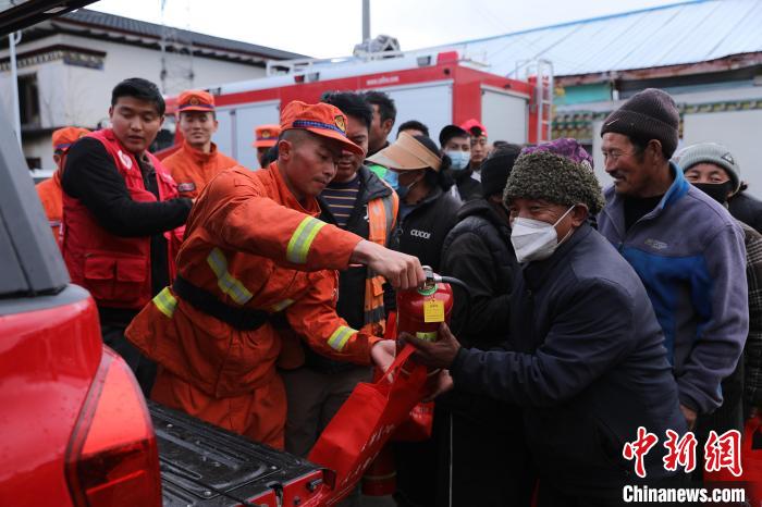 該中隊為每家每戶配發(fā)干粉滅火器。西繞拉翁 攝