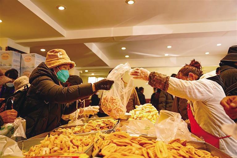 2月13日,記者走進(jìn)位于拉薩市林廓北路的龍?jiān)隹ㄈ?,香味撲鼻而?lái),不同樣式的卡塞被整齊地?cái)[放在貨架上,引得不少市民前來(lái)詢(xún)價(jià)購(gòu)買(mǎi)。“我們是這家店的老顧客了,每逢過(guò)年都會(huì)來(lái)店里購(gòu)買(mǎi)卡塞,今年我準(zhǔn)備一次性買(mǎi)五六斤,讓家人吃得開(kāi)心?!笔忻裨髯楷斦f(shuō),“以前我們都是自己炸卡塞,現(xiàn)在沒(méi)時(shí)間做了,就來(lái)市場(chǎng)上買(mǎi)現(xiàn)成的。這家店制作的卡塞不僅樣式好看,味道也不錯(cuò),家人很喜歡,而且到店還能看到制作過(guò)程,對(duì)食品安全也比較放心?!?/p>