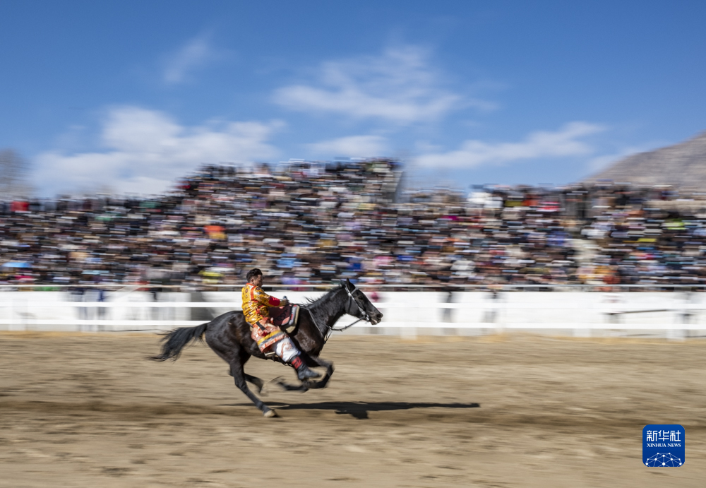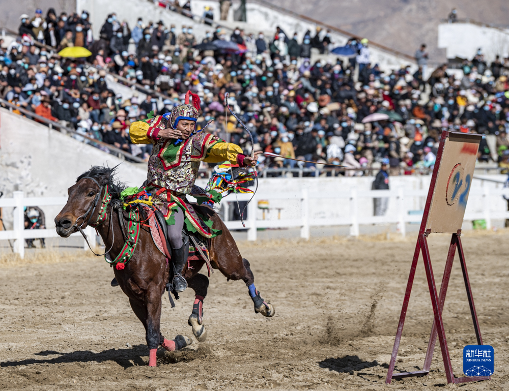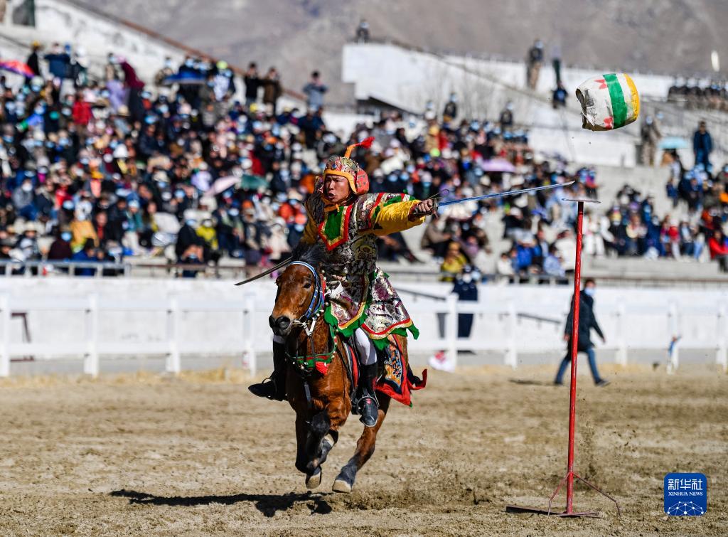2月23日,在拉薩賽馬場(chǎng)舉辦馬術(shù)表演已成為當(dāng)?shù)貞c祝新年的傳統(tǒng),深受廣大群眾喜愛。騎手們英姿颯爽,為觀眾們帶來騎馬拾哈達(dá)、騎馬射箭等精彩表演。