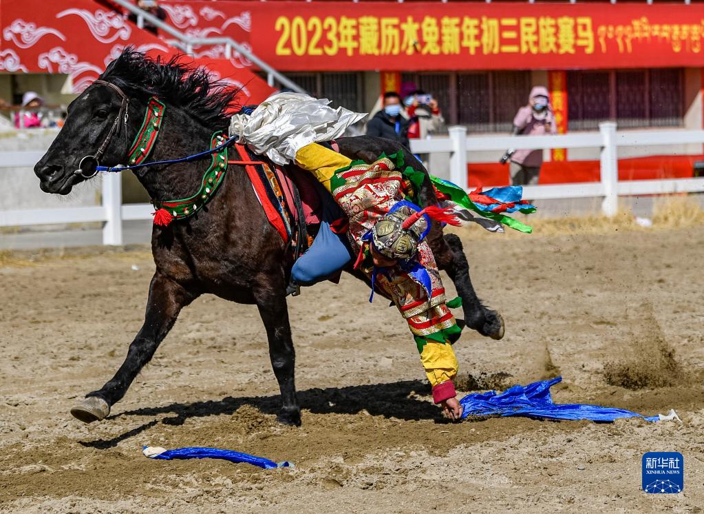 2月23日,騎手表演騎馬拾哈達(dá)。張汝鋒 攝