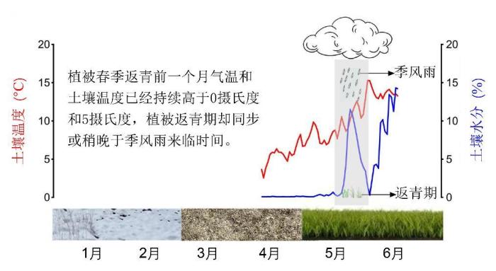羅天祥指出,本項研究通過在青藏高原中部念青唐古拉山北坡的西藏納木錯高寒湖泊與環(huán)境國家野外科學(xué)觀測研究站建立紅外增溫和自動增雨控制實驗平臺,研究團隊對2013-2014年紫花針茅、大花嵩草、釘柱委陵菜3個優(yōu)勢物種返青期與枯黃期物候進行監(jiān)測,并同步記錄氣溫、降水、土壤溫度和土壤水分,解析了增溫2攝氏度、增雨15%和30%對高寒草原-草甸過渡帶優(yōu)勢種物候變化的影響,研究結(jié)果明確顯示,降雨增加導(dǎo)致青藏高原高寒草地植被返青提前、枯黃推遲,而與增溫基本無關(guān)。