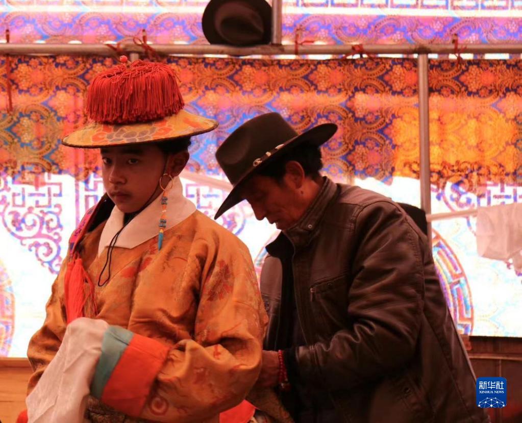 2月25日,旦巴平措穿戴藏戲服。新華社發(fā)(普布次仁攝)