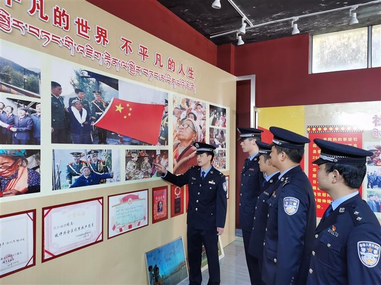 日喀則邊境管理支隊(duì)樟木邊境派出所民警參觀“國旗老阿媽”紀(jì)念館。記者 趙文慧 攝
