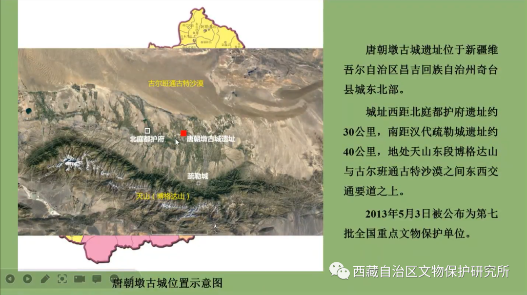 唐朝墩古城遺址位于新疆昌吉州奇臺(tái)縣城東北部,東鄰水磨河,西、南、北三面緊鄰縣城居民區(qū)。城址西距唐北庭都護(hù)府遺址約30公里,南距漢代疏勒城遺址約40公里,地處天山東段博格達(dá)山與古爾班通古特沙漠之間東西交通要道之上。2013年公布為第七批全國(guó)重點(diǎn)文物保護(hù)單位。唐朝墩古城始建于公元7世紀(jì)上半葉的唐代早期,至14世紀(jì)逐漸廢棄,主要?dú)v經(jīng)了唐、高昌回鶻和蒙元三個(gè)時(shí)期。2018~2022年,中國(guó)人民大學(xué)北方民族考古研究所與新疆文物考古研究所聯(lián)合對(duì)唐朝墩古城遺址開展了連續(xù)5年的考古發(fā)掘,在基本厘清城址布局結(jié)構(gòu)和年代序列的基礎(chǔ)上,清理出唐代經(jīng)高昌回鶻時(shí)期至元代的各類遺址,包括帶有圍墻的唐代院落遺址、羅馬式浴場(chǎng)遺址、佛寺遺址、景教(東方敘利亞基督教)寺院遺址等。出土了大量的不同時(shí)期遺物,印證了天山北麓自唐代至元代多民族融合、多宗教共存、多文化兼容的歷史事實(shí),更為研究和闡釋絲綢之路上東西文化交流、多民族融合的大一統(tǒng)格局形成和發(fā)展歷程等問(wèn)題,提供了生動(dòng)而堅(jiān)實(shí)的實(shí)物材料。此次發(fā)現(xiàn)為我們探討公元10~13世紀(jì)天山北麓的城市生活景象提供了資料與依據(jù),也為我們透物見(jiàn)人,從社會(huì)史的角度考察當(dāng)?shù)囟嗝褡宕笠唤y(tǒng)格局的形成提供了重要線索。