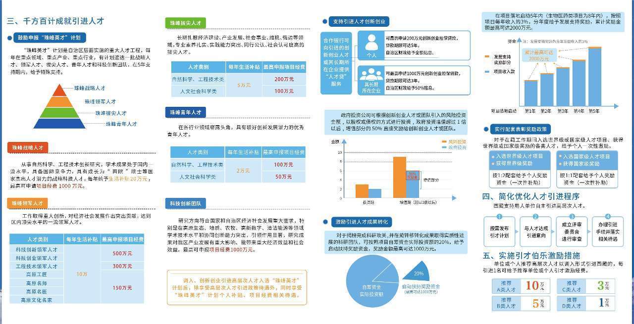 據(jù)悉,近年來,西藏自治區(qū)深入實施人才“育、引、用、留”四大工程,制定出臺了《關(guān)于加強(qiáng)和改進(jìn)新時代西藏人才工作的若干措施(試行)》,科學(xué)劃分引進(jìn)人才類別,將引進(jìn)高層次人才劃分為A、B、C、D四類。在個人補(bǔ)助、科研補(bǔ)助、薪酬待遇、職務(wù)待遇、職稱評聘、住房政策、家屬安置、醫(yī)療保障等方面全力保障引進(jìn)人才待遇。同時,千方百計成就引進(jìn)人才,支持引進(jìn)人才創(chuàng)新創(chuàng)業(yè),激勵引進(jìn)人才成果轉(zhuǎn)化,實行配套表彰獎勵政策。此外,在簡化優(yōu)化人才引進(jìn)程序、實施引才伯樂激勵措施方面均有明確政策。