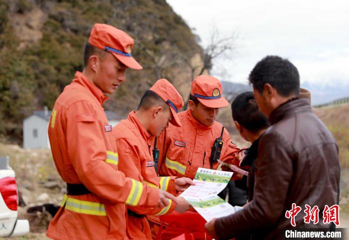 森林消防隊員在祭祀?yún)^(qū)域開展防火宣傳。 西繞拉翁 攝