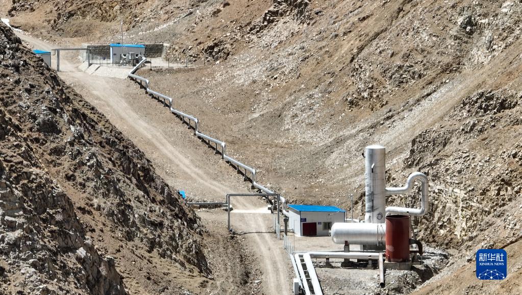 在海拔近4700米的現(xiàn)場,記者看到帶著高溫蒸汽的熱水從地下井口涌出,經(jīng)過設(shè)備分離,高溫高壓的蒸汽和熱水分別從兩個管道進入電廠。在這里,機器提取熱能用于發(fā)電,然后讓冷卻的尾水通過管道重新返回地下,形成全封閉循環(huán)再利用模式。
