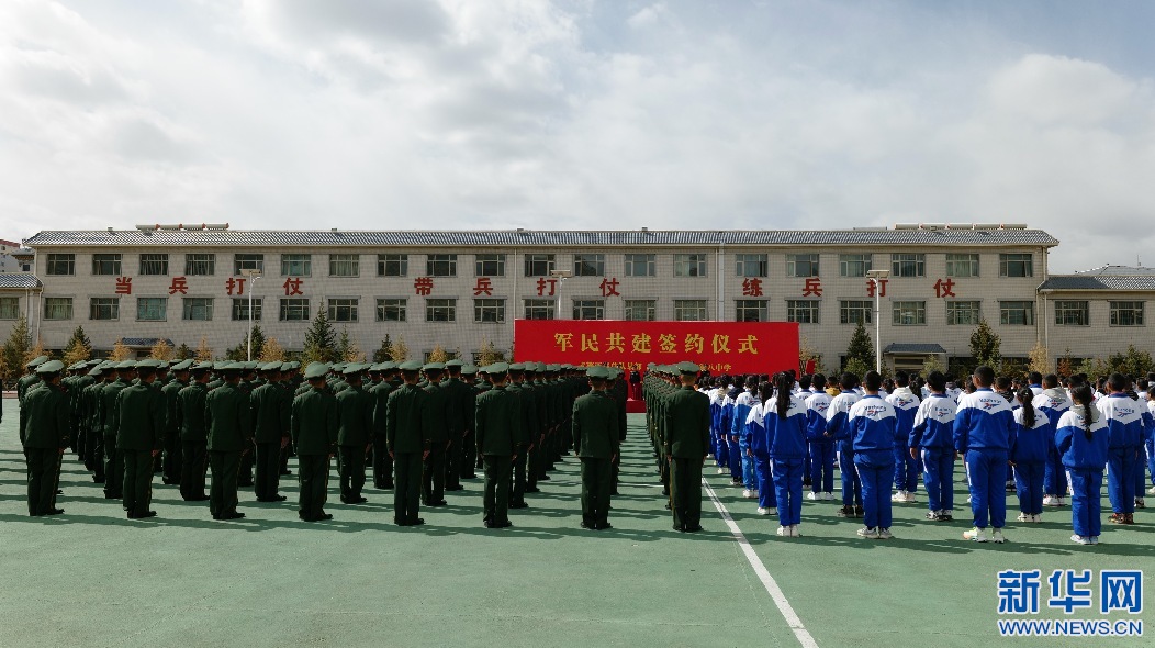 14日上午,武警西藏總隊(duì)某部與拉薩市第八中學(xué)在拉薩舉行軍民聯(lián)誼共育簽約儀式,來(lái)自武警總隊(duì)某部的官兵和拉薩市第八中學(xué)的師生約400人參加了簽約儀式。