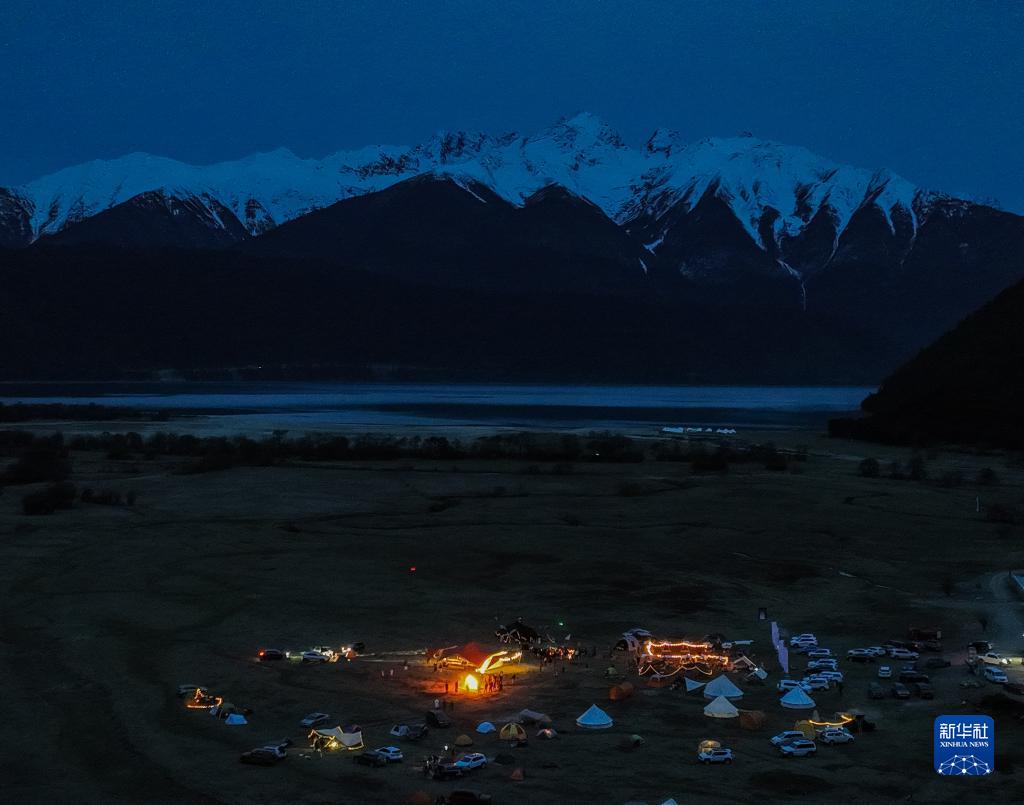當(dāng)日,西藏舉辦“巴松錯漂流露營大會”。春日里的巴松錯湖水清澈,雪山環(huán)繞,景色宜人,吸引了來自全國各地的游客到此體驗露營生活。