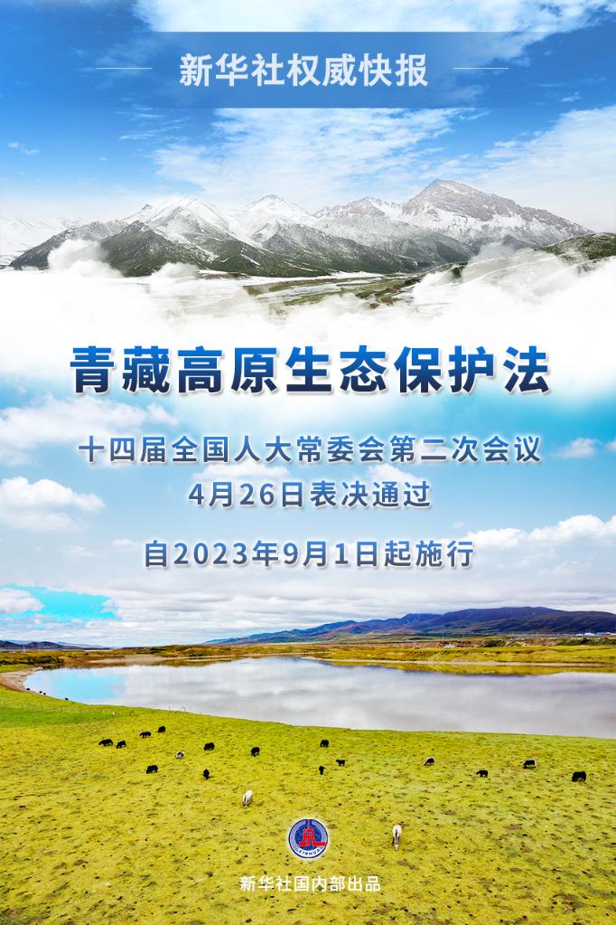 4月26日,十四屆全國(guó)人大常委會(huì)第二次會(huì)議表決通過(guò)青藏高原生態(tài)保護(hù)法。法律自2023年9月1日起施行。
