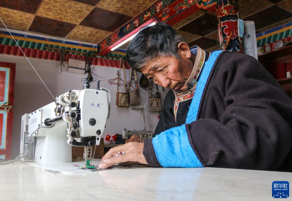61歲的索朗群培回憶,他小時(shí)候見到村里的大人騎在有馬包的馬上,特別威風(fēng),讓他對制作馬包產(chǎn)生了濃厚興趣。21歲時(shí),他師從當(dāng)?shù)乩纤嚾硕嗖冀軐W(xué)習(xí)馬包制作技藝。如今,他已是林芝市第一批市級非物質(zhì)文化遺產(chǎn)項(xiàng)目中馬包手工制作技藝的傳承人。