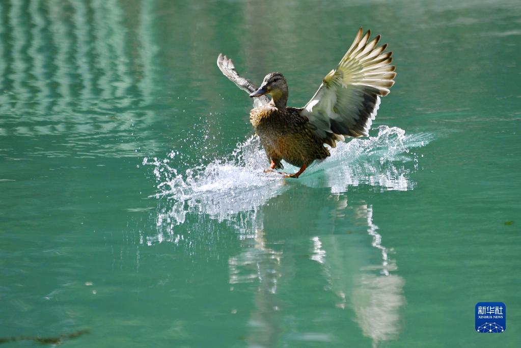 立夏時節(jié),平均海拔3645米的西藏拉薩市拉魯濕地國家級自然保護區(qū)里,草綠水清鳥兒歡,景色誘人。新華社記者 張汝鋒 攝