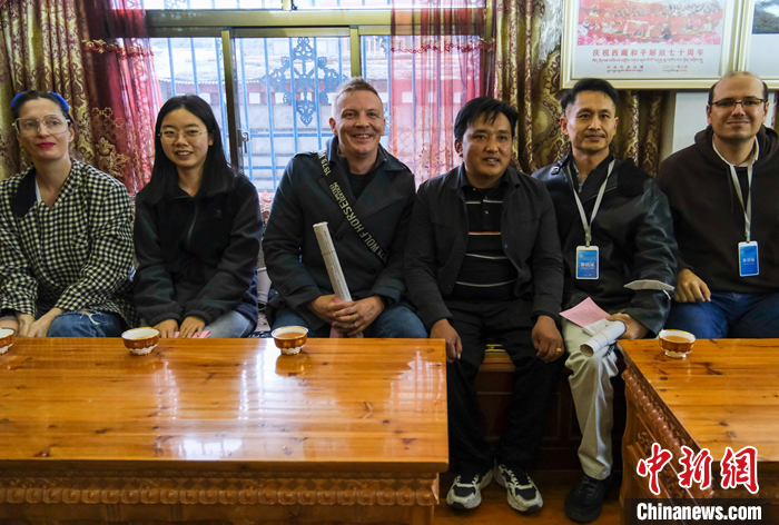 羌納鄉(xiāng)西嘎門巴村是墨脫縣甘登鄉(xiāng)魯古村、果登村于2003年搬遷合并而成,在門巴族村民貢桑家里,外籍專家、學者一起品嘗了藏式清茶和酥油茶。外籍記者拉斐爾·澤爾貝托(Rafael Henrique Zerbetto)問:“搬遷后,最大的變化是什么?”“如果生病了去哪里看醫(yī)生?費用怎么樣?”
