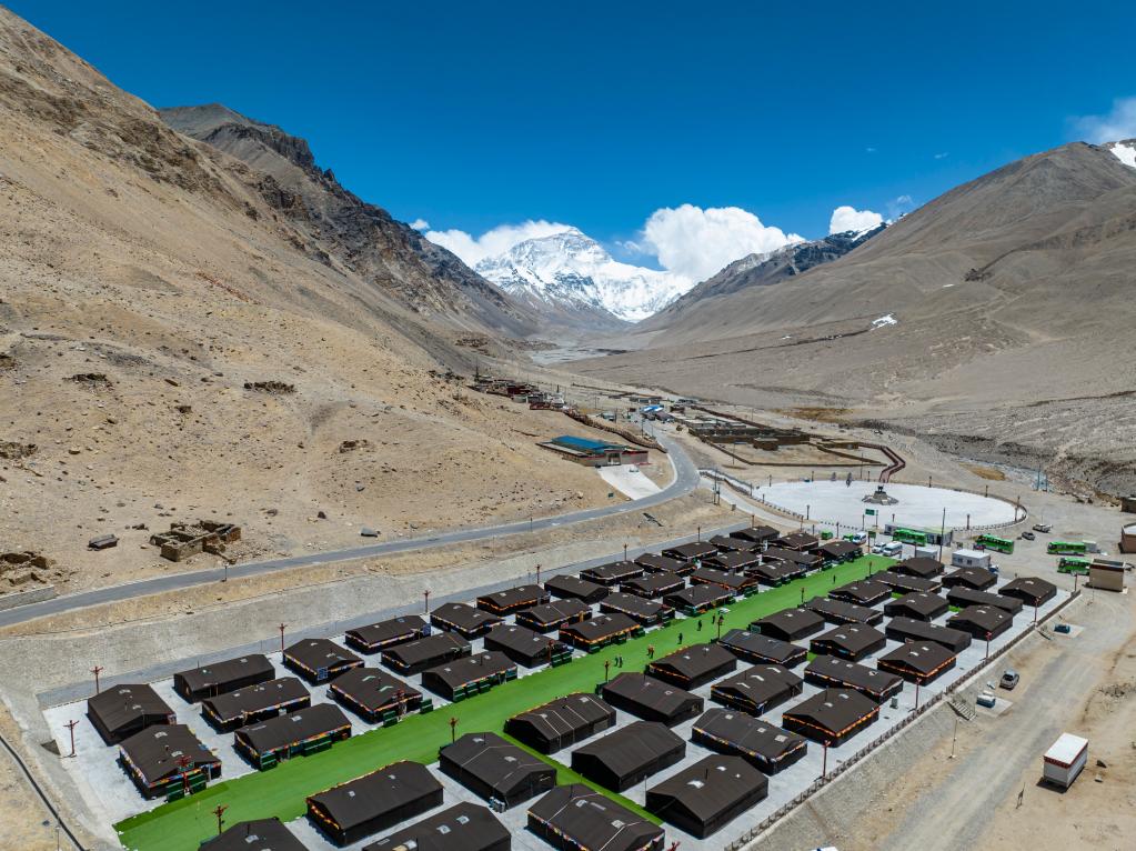圖為珠峰游客大本營的帳篷旅館(5月20日攝,無人機(jī)照片)。新華社記者孫非 攝