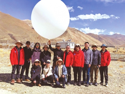 “我們選擇了對水汽通道進行觀測研究,首先就要進行實地考察。喜馬拉雅山脈中段有數(shù)條河谷,水汽很可能是通過河谷進入青藏高原。大氣小分隊選取珠峰東坡的嘎瑪溝進行考察,開展臨時機動觀測對這個設(shè)想進行驗證。之后,在嘎瑪溝兩端的曲當(dāng)鄉(xiāng)和陳塘鎮(zhèn),架設(shè)了兩個自動氣象站和兩套水汽探測系統(tǒng),并在曲當(dāng)鄉(xiāng)開展了無線電氣球探空試驗。”李茂善介紹。