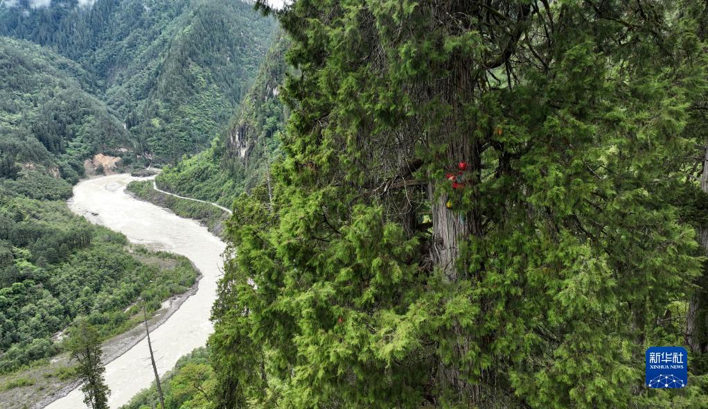 6月15日從空中俯瞰亞洲第一高樹(無人機(jī)照片)。新華社記者 晉美多吉 攝