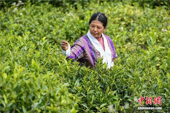 墨脫縣德興鄉(xiāng)易貢白村門巴族婦女采摘茶葉。貢嘎來松 攝